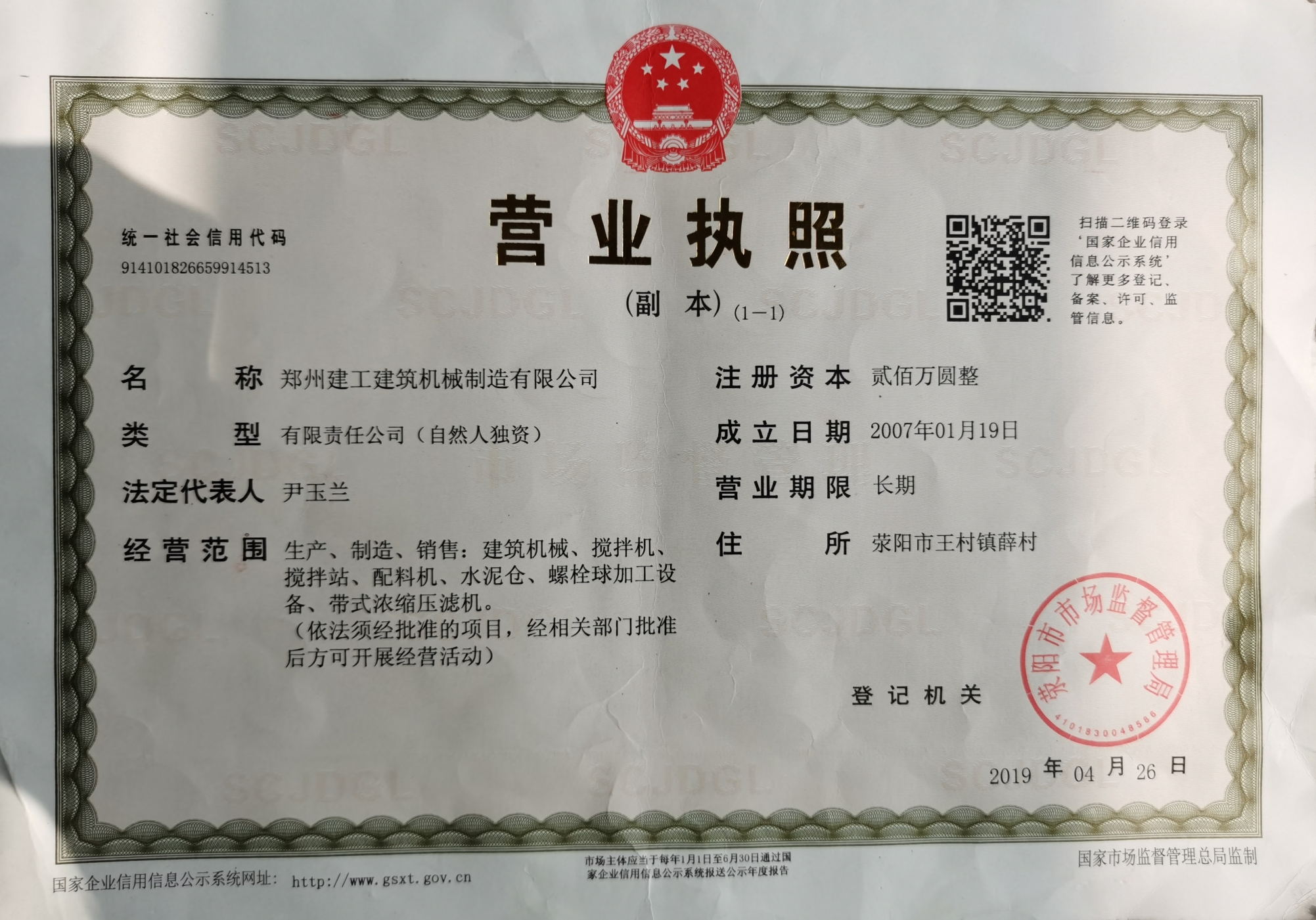 鄭州建工建筑機械制造有限公司以誠待人,以信立企的經(jīng)營理念
